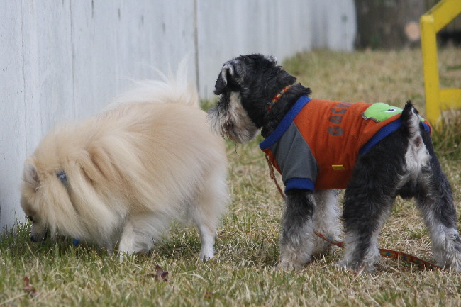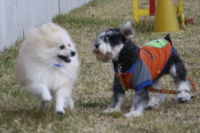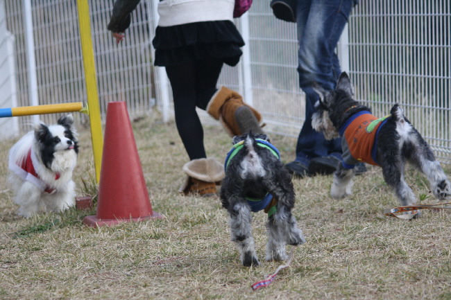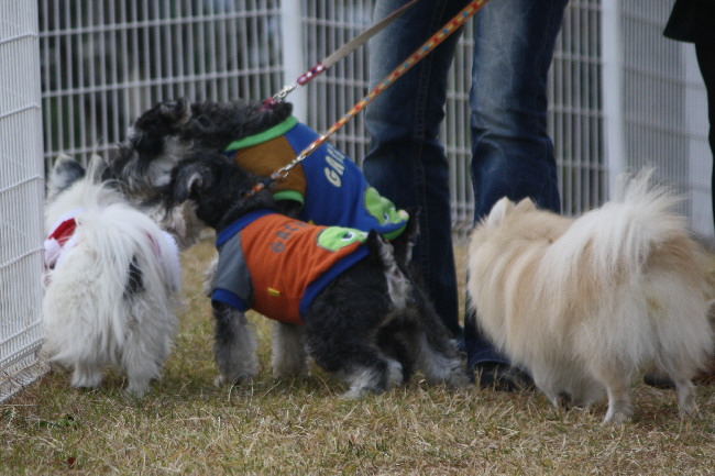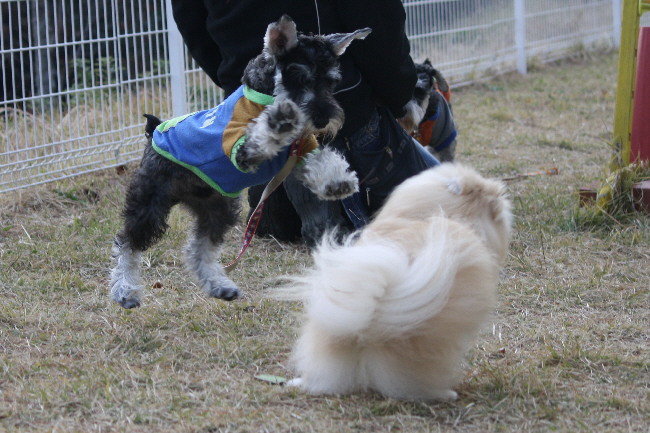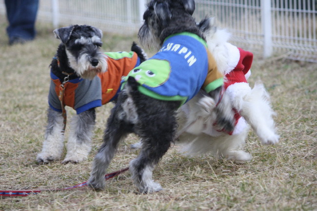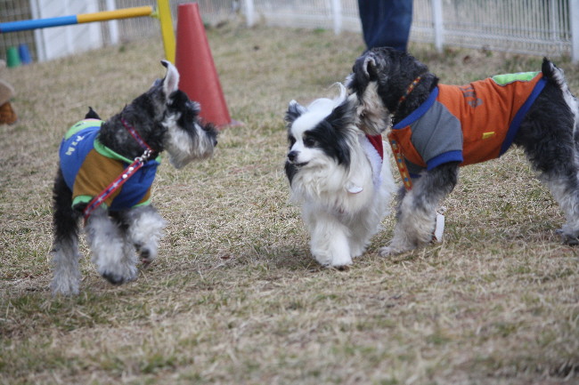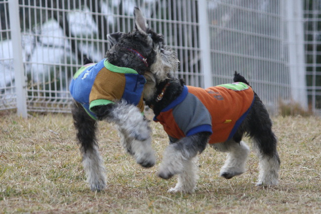しばしこうして遊んでいると、今度はM・シュナウザー2頭がやってきました。