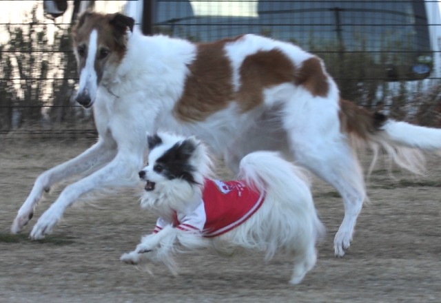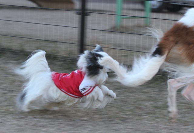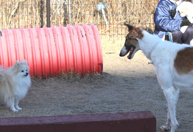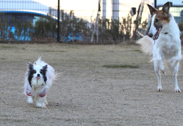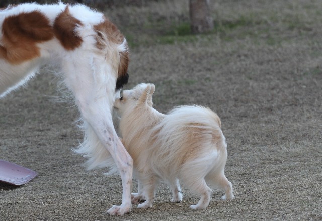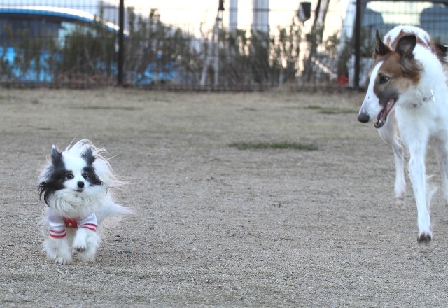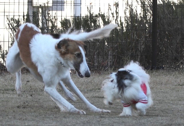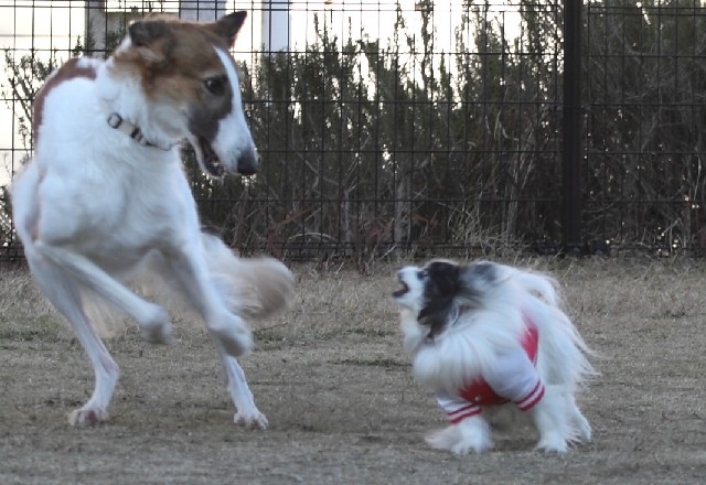 ボルゾイの女の子(レナちゃん)にちょっかいをかけられたようで、怒って追いかけていましたw