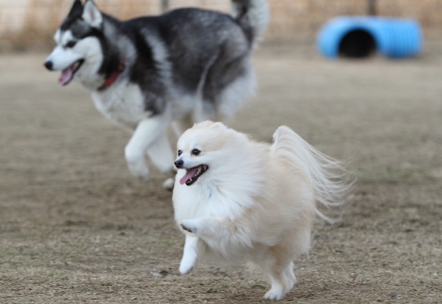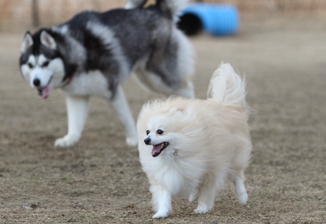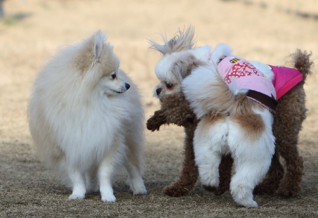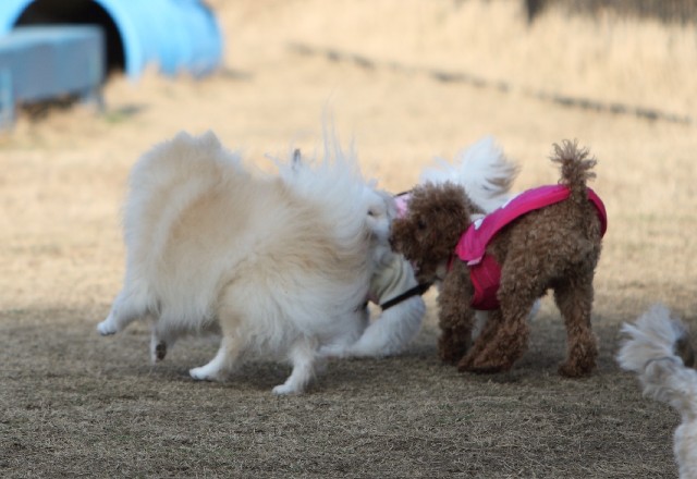 常連のトイプー君とポメ×シーズー君が遊んでいました。