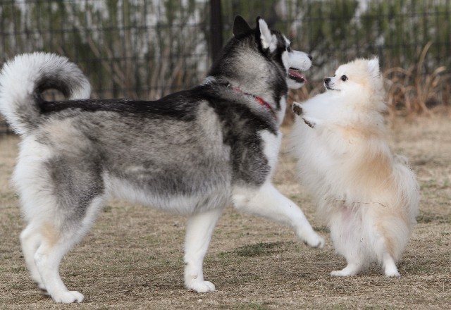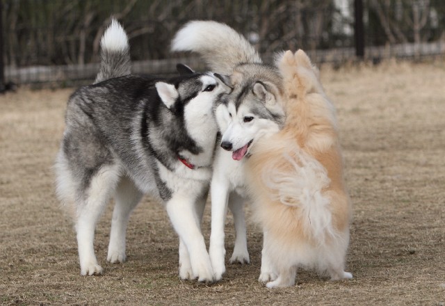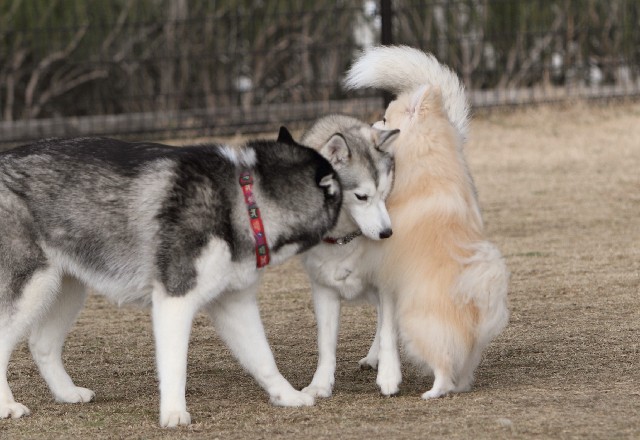 早速ハスキーのゆめちゃんにロックオンされた?