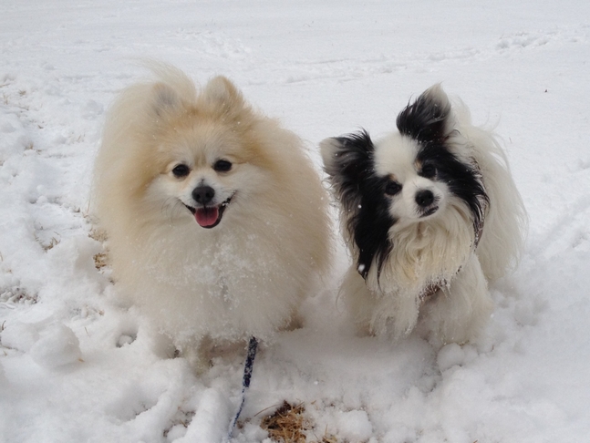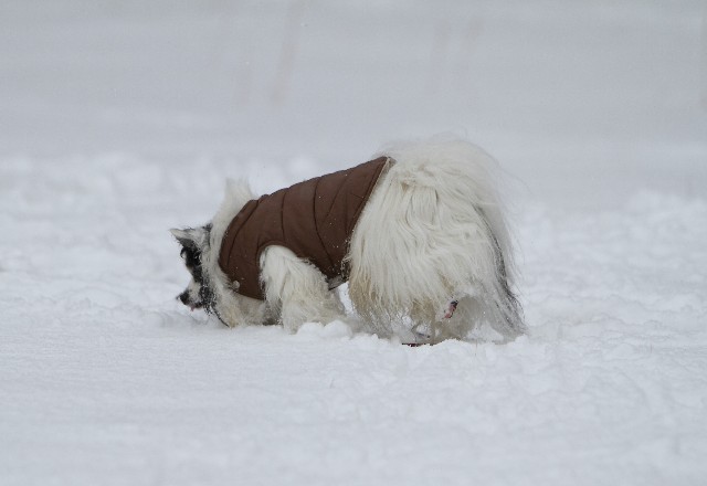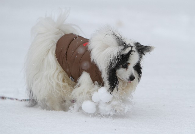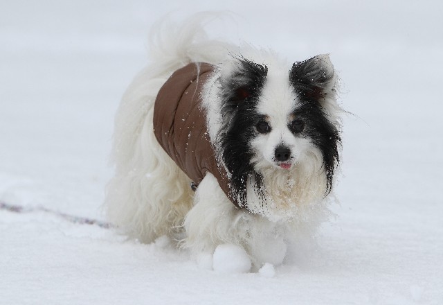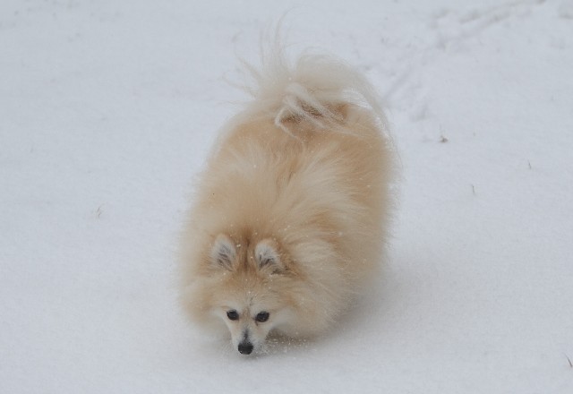 パピはまたまた大量の雪玉を付けながら歩いてました。