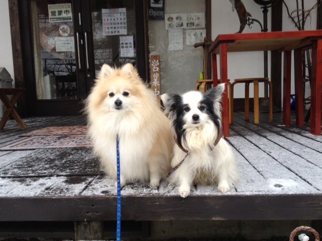 ぜんざいを食べ終わった頃に常連のパピヨンきらら君がやってきました。