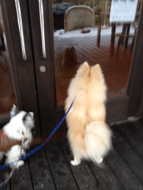 いやいや、ここはドッグカフェじゃないんだから店内には入れないんだ。