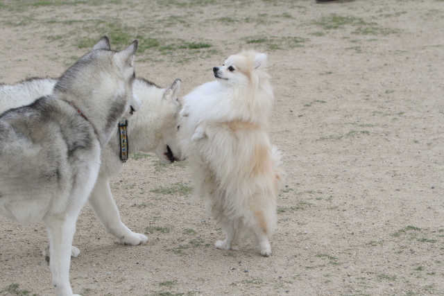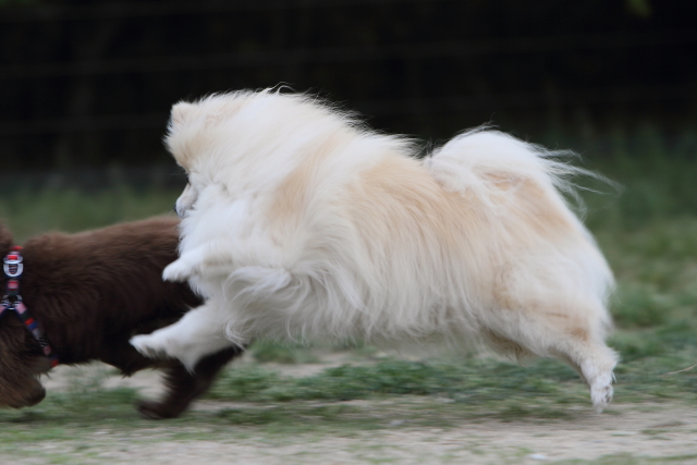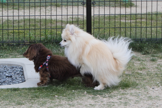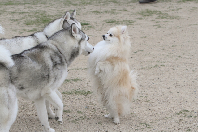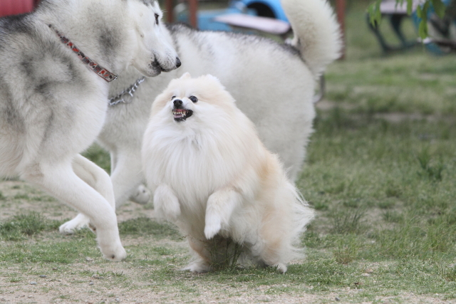 ジョンは(パピも)自分が強いと勘違いしている節があって、大型犬にも怯まずに向かっていくんですよ(^^;)