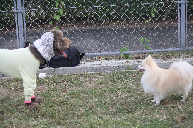 休憩中のニンファちゃんのところにジョンがやってきました。