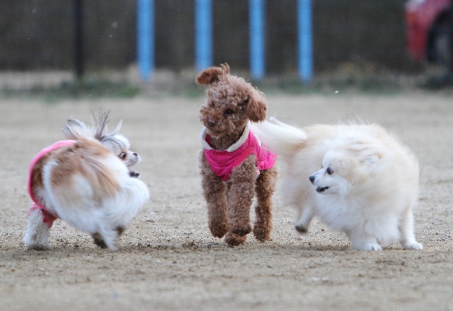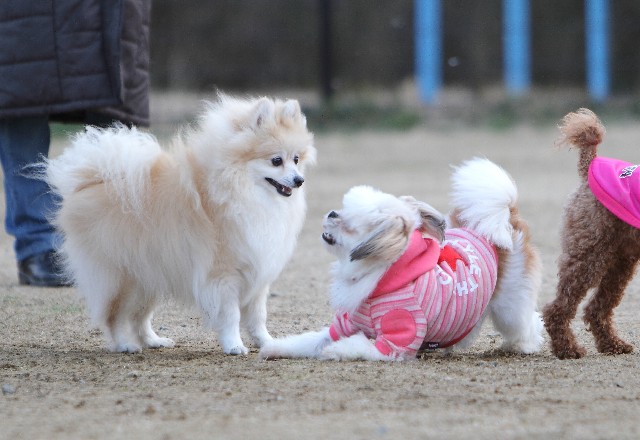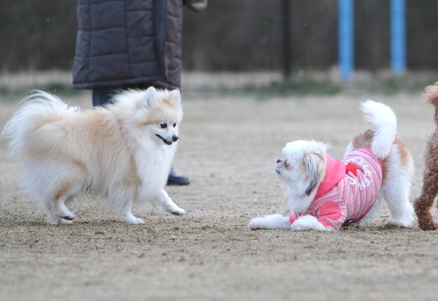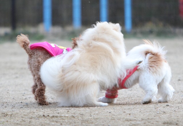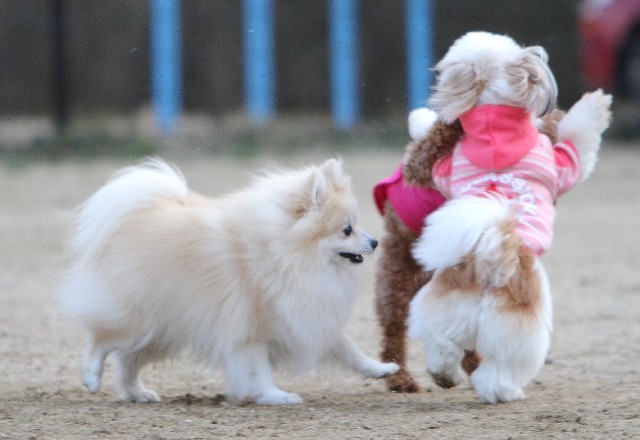 以前はちょくちょくトイプー君とも遊んでいたんですけど、最近はシーズー×ポメ君がお気に入りな様でこの日もシーズー×ポメ君をロックオンしていました。