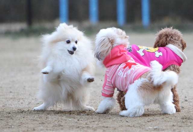 いつもの様にトイプー君とシーズー×ポメmix君がじゃれていたところに、空気を読まずに混じりに行ったジョン