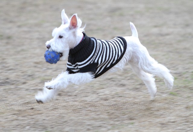 ボール遊びをしていた白シュナちゃんのボールを横取りして、取られまいと足で押さえ込んでいました(^^;)