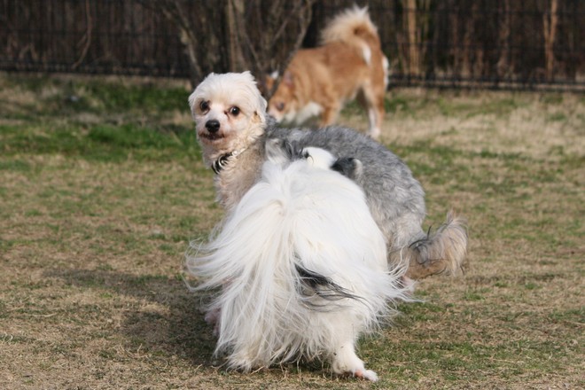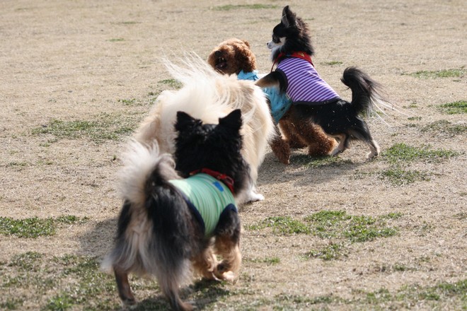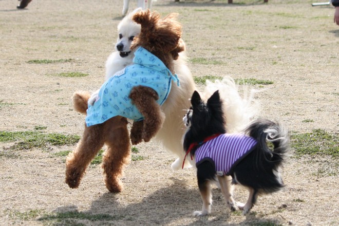 前はどんな犬種でも誘われると一緒に遊んでたんですけど、最近はこんな感じが多いんです(^^;)