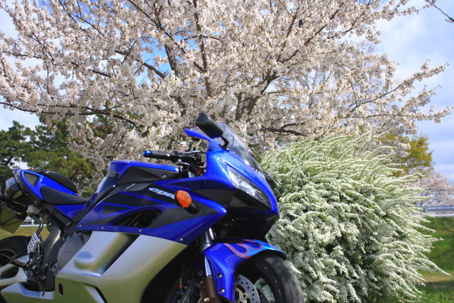 桜と雪柳とのコラボ@武庫川河川敷