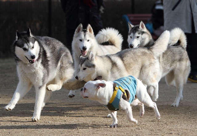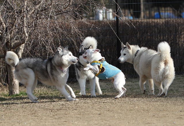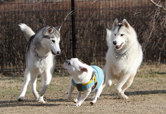 あちらの方ではフレブルとハスキー軍団が追いかけっこ