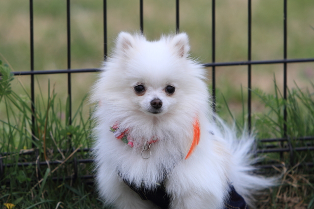 何度かここで会った事があるチビ白ポメちゃんがいてました。