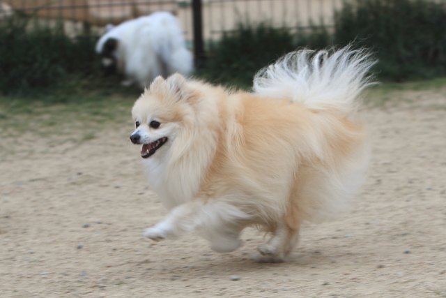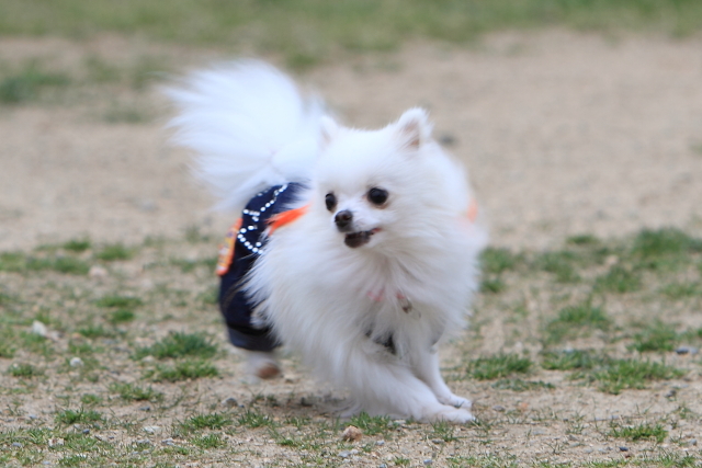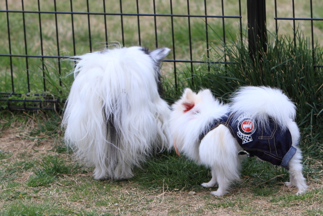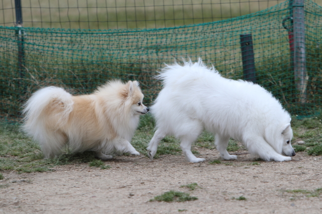 そんなチビポメちゃんと対照的なデカポメのジョンは、沢山のワンコと飼い主さんがいて嬉しそうに駆けてました。