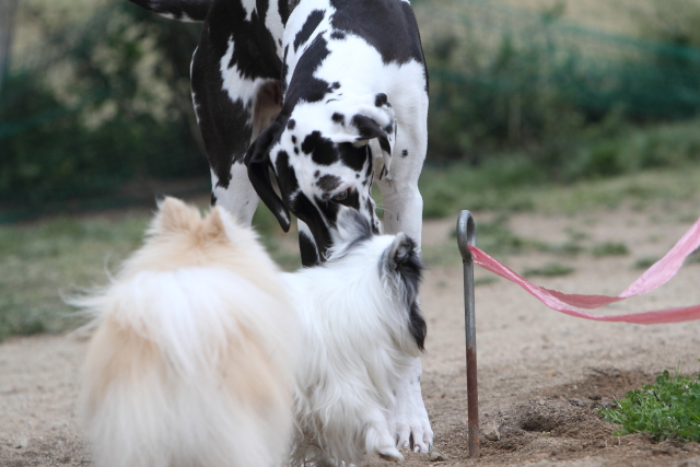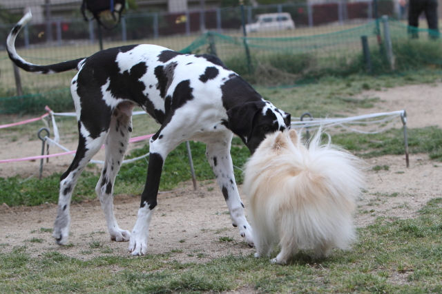 はじめ遠目で見てるときは「えらい体格のいいダルメシアンやな~」と思っていたんだけどw、グレード・デーンにこんな色の子もいるんですね、ビックリしました。