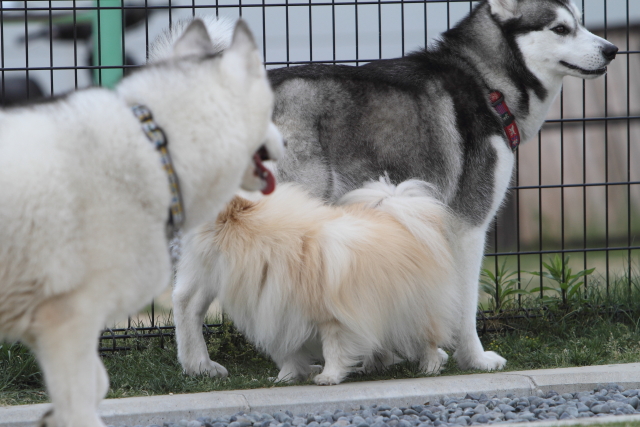 ドッグランにはいつものハスキー軍団の四頭(りょう君が写ってないけど)