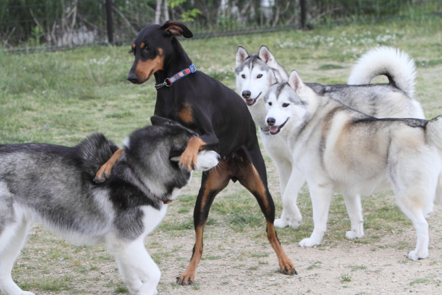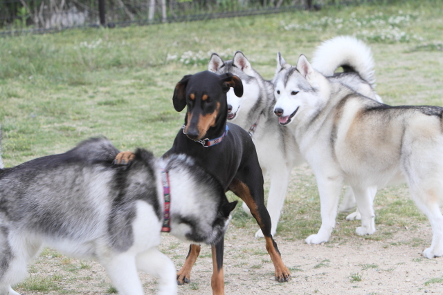 ドーベルマンちゃんとはお初でしたけど、ハスキー軍団の子達は何度も会ってるので全く大丈夫なんですよ^^
