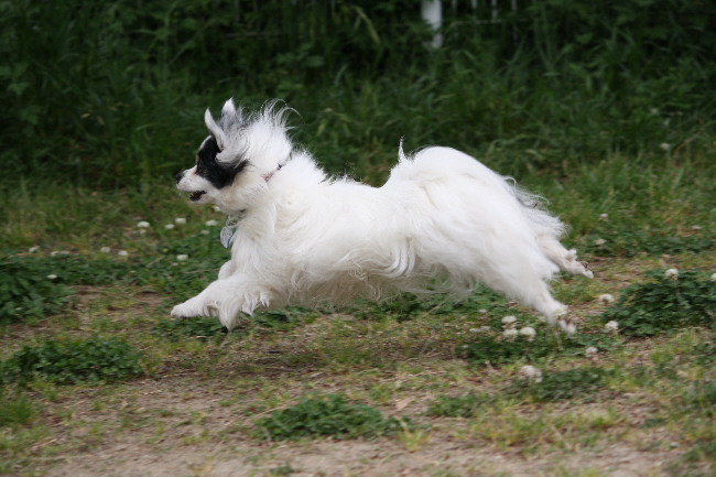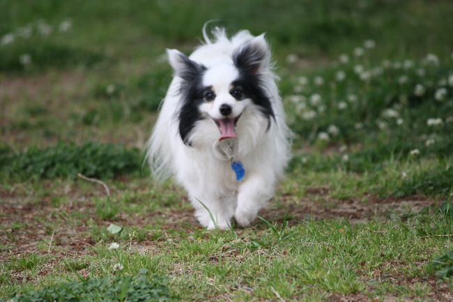 パピの毛質は普通のパピヨンっぽくはないそうです(トリマーさん談)