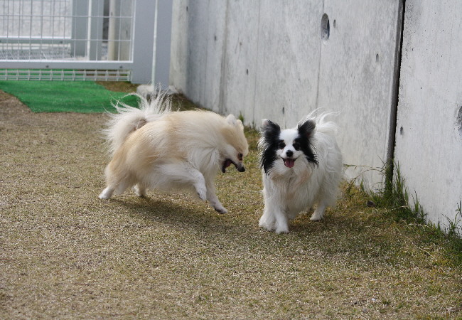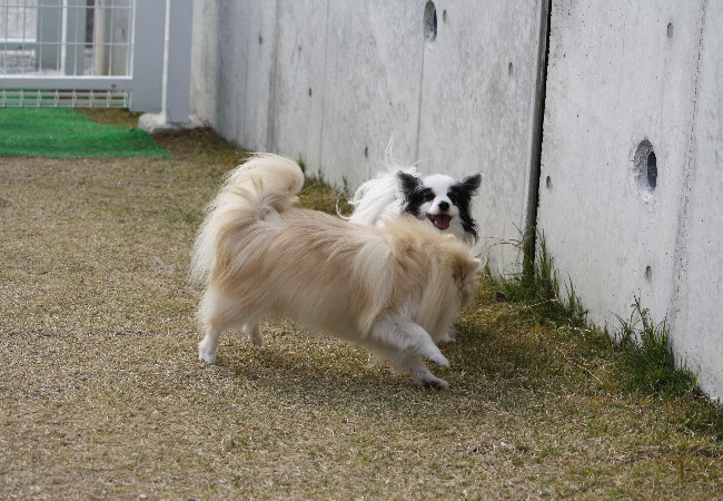 家でも同じ様な感じで誘うんだけど、パピは嫌がって逃げ回っています(^^;)