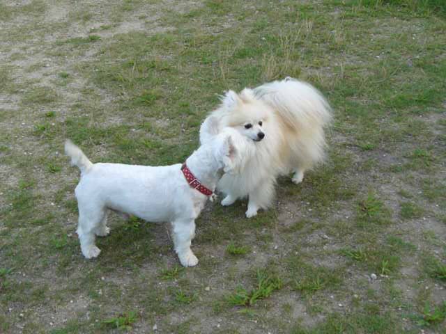 かなり念入りに匂いを嗅いでいるのは、ウェスティーのバジル君です。