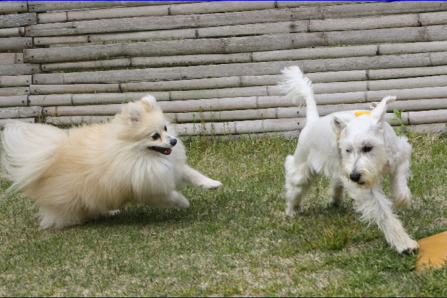 この後、大ドッグランの方に常連のワンコ達がやってきたので、ポン君のところと一緒に移りました。