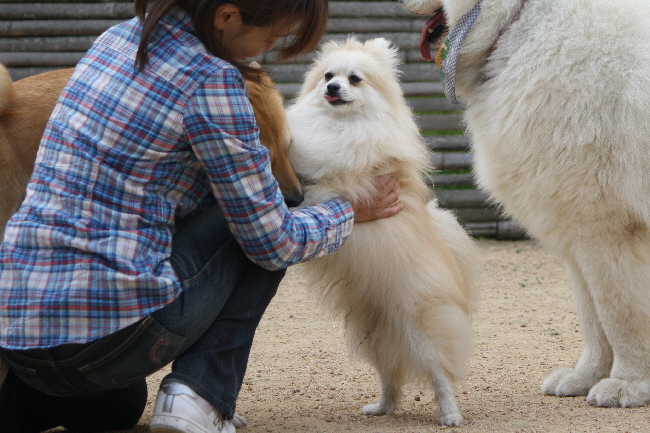 けど、こうして間を割って入ってもワンコには怒りも吠えもせず、「何ほかの子ヨシヨシしてんねん」と飼い主さんに甘える姿はほんと微笑ましいし可愛いんです(^-^)