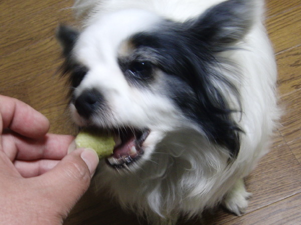 はじめは未知のオヤツに半信半疑でクンクンとしてましたけど、食べ出すと一瞬でなくなりました(笑)
