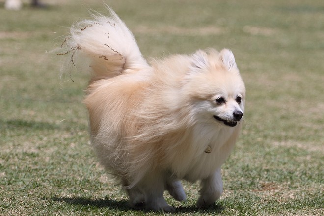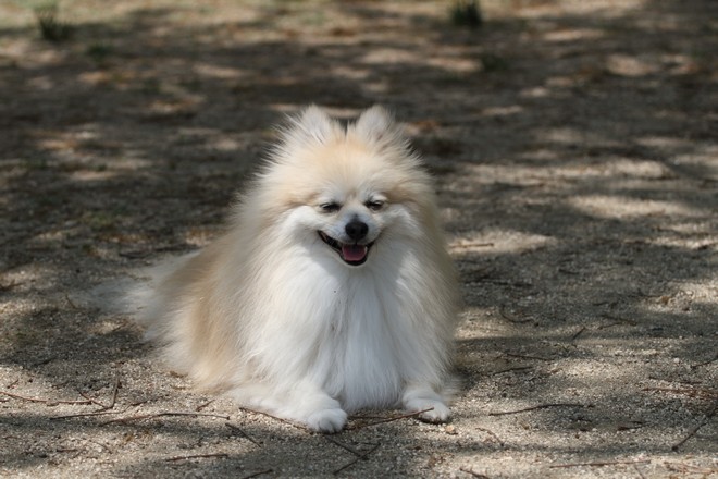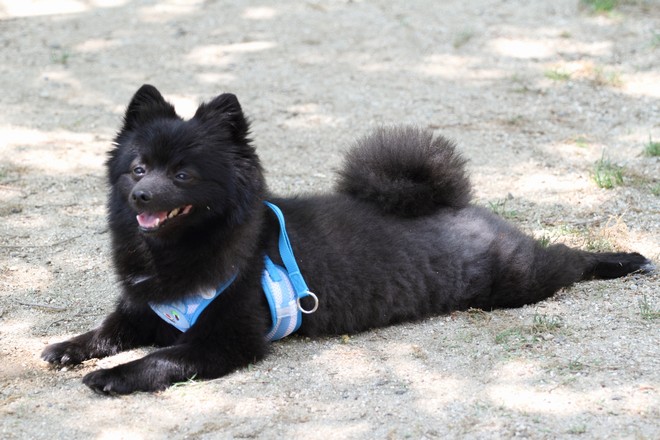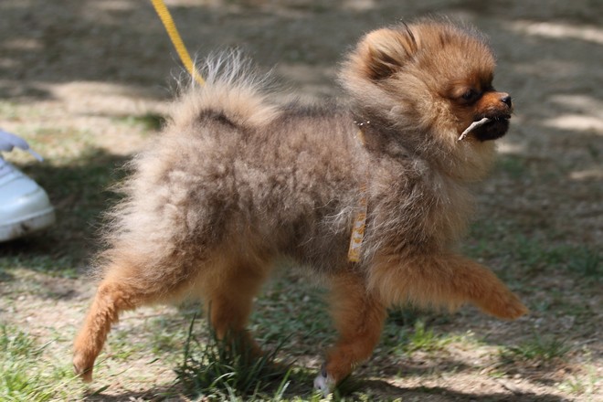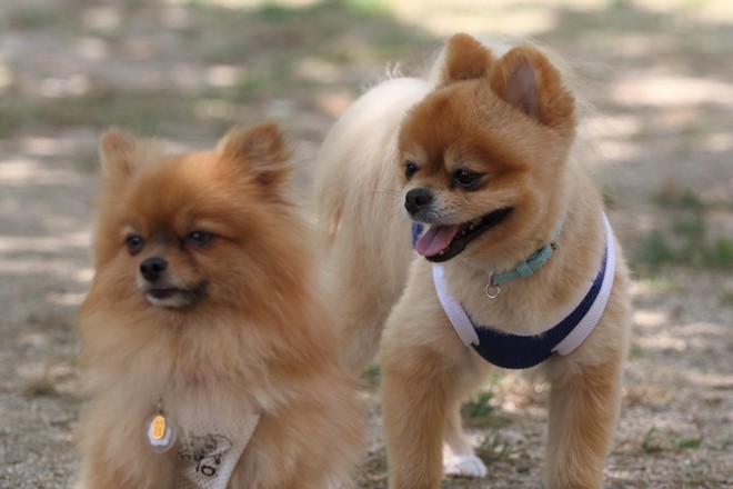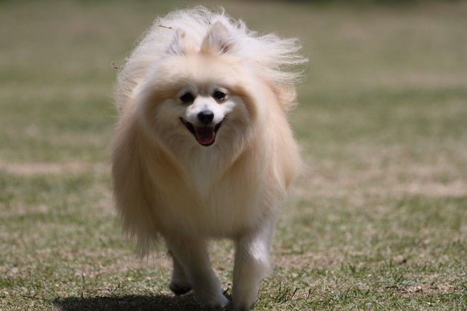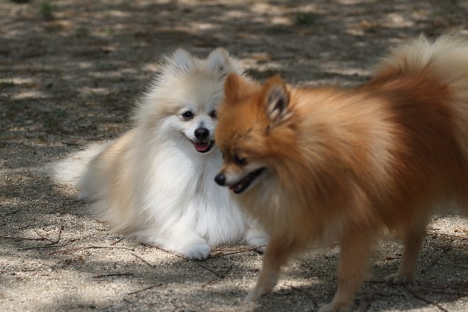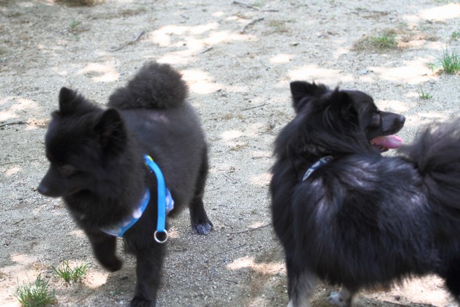 この黒ポメ君ちはクリームポメも飼われていて、もちろん一緒にランに来ていました。