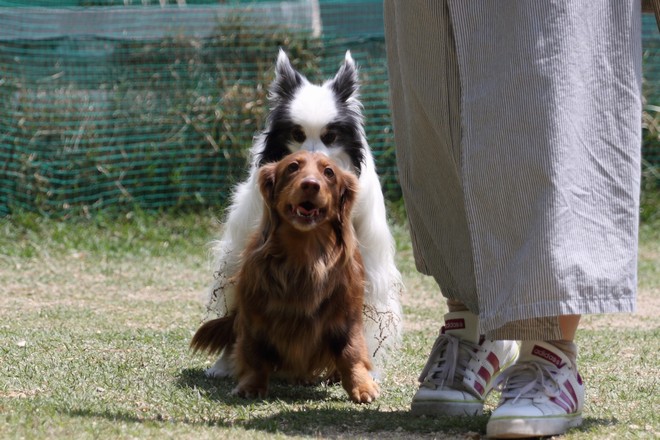 ぷっ、パピくんに、マウントされているダックス様、お顔が切なげだわ。( ̄▽ ̄;)