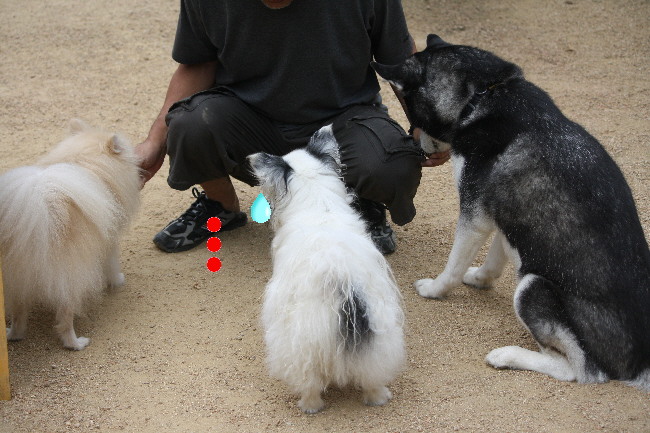 上の写真は実はシドちゃんのご褒美を上げているときに、ジョンとパピが匂いを嗅ぎ付けてやってきた時なんです。