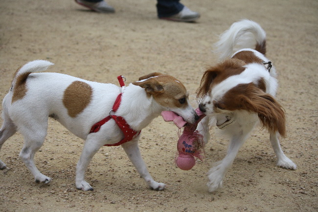 このジャックラッセルテリアのハナちゃん、とても人懐っこくてワンコにもとてもフレンドリーです。