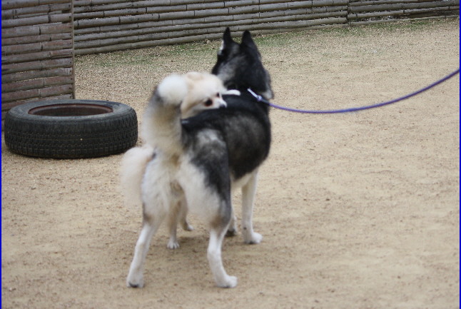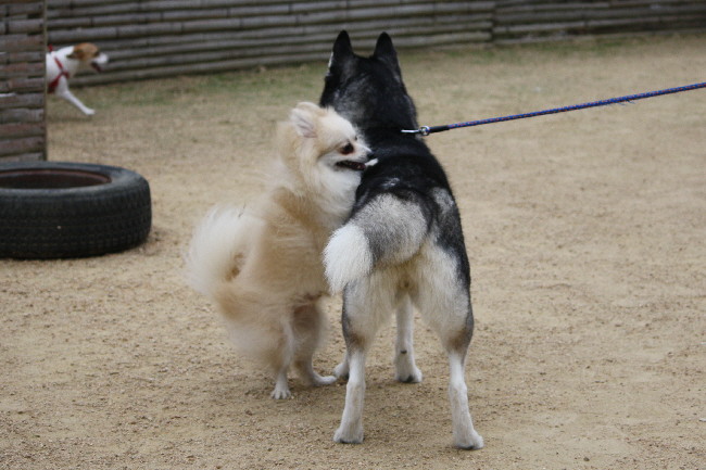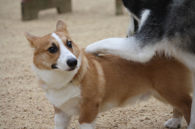 いつもはみんなにマウンティングされたり、無理やり遊びに付き合わされてるシドちゃんが、珍しくこのコーギー君を気に入ったようで、自分から積極的に遊びに誘ってました。