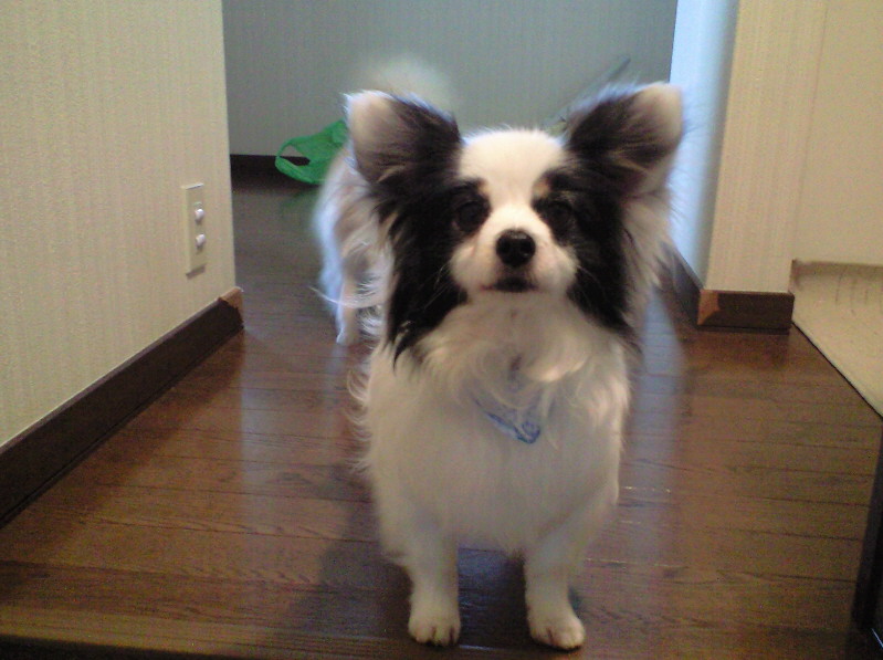 顔つきが幼いからか毛が短かったらほんとにパピーみたいで可愛いですけど(親ばか)、早くパピヨンらしい優雅なコートになって貰いたいです(^-^)
