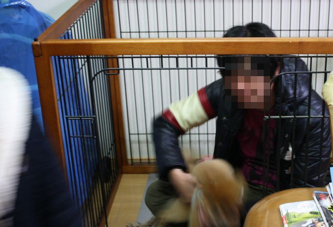 何故か自ら進んでさくらちゃんのサークルに入り、寛いでいた茶々パパさん(笑)