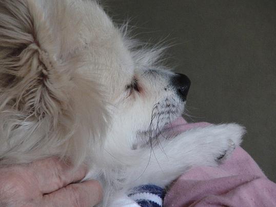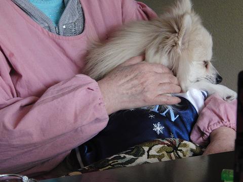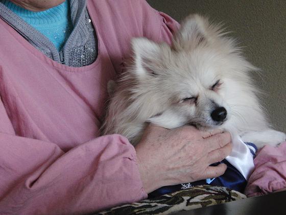 ジョンちゃん、お母さんの腕で熟睡できるなんていいわね~。