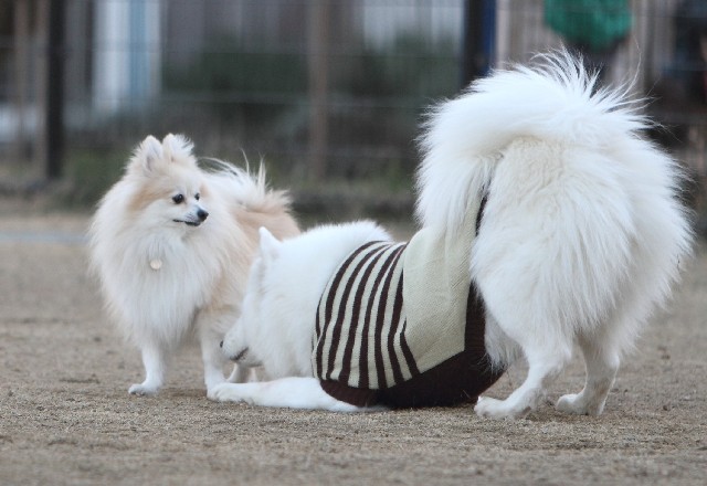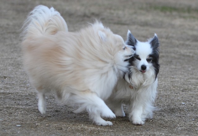 ジョン君がパピ君にちょっかい(?)かけているのかな~可愛いですね☆
