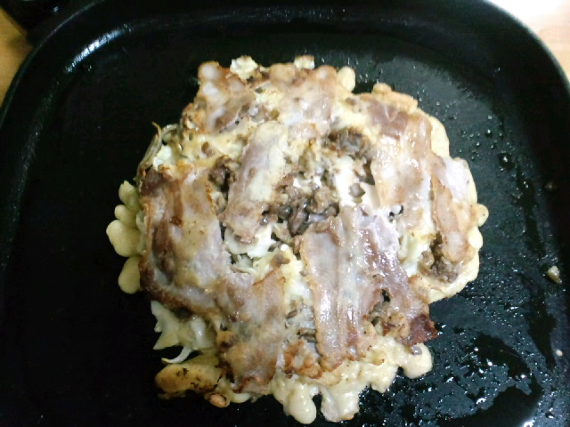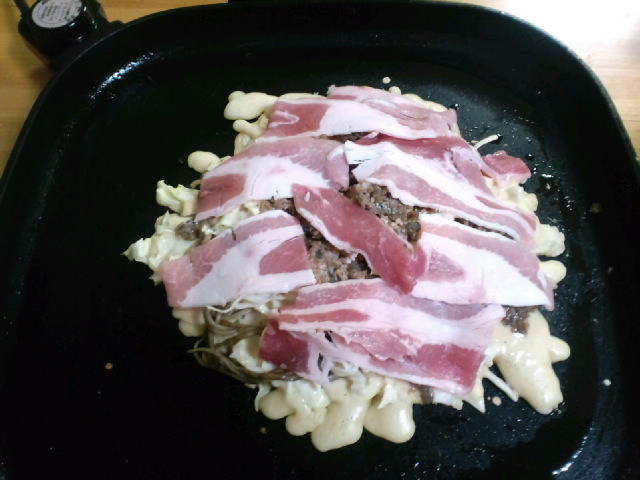 翌日にリベンジでまたお好み焼き(モダン焼き)を焼いてみました(爆)
