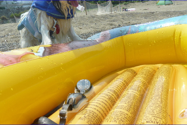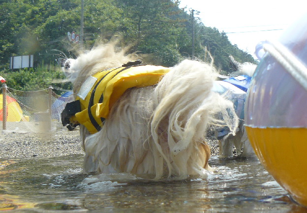 ボートに乗ることが好きになったのか、波打ち際とは言え水に浸かっているのがイヤなのかはわからないけど、何度もこうして自分から乗り込んでいました。