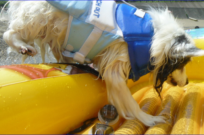 今回ビックリしたのが、パピが自分からボートに乗った事です。