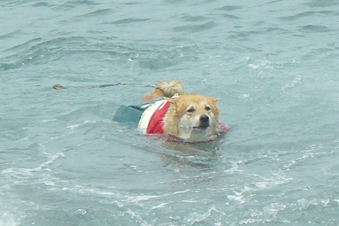 ジョンは波が穏やかだと、浜から沖にいる自分に向って泳いでくる事も出来るんですけどね(短い距離だけどw)