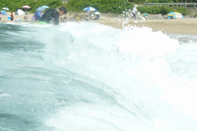小学生位の子は楽しんでいたけど、もっと小さい子はよく頭から波を被ってました(笑)