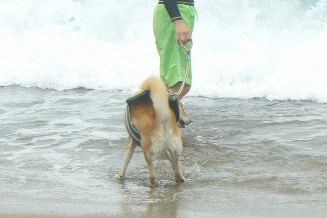 ジョンは引き潮で中々前に進めず、パピも同様&思いっきり波に飲まれたのがわかると思います(笑)