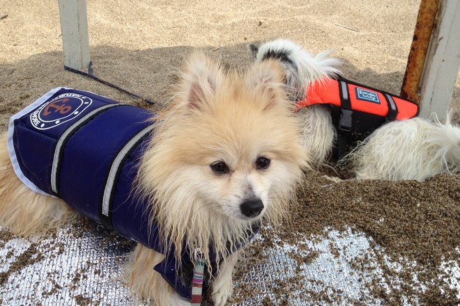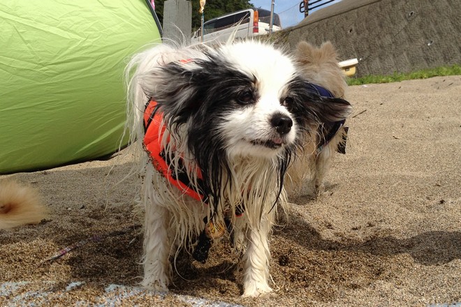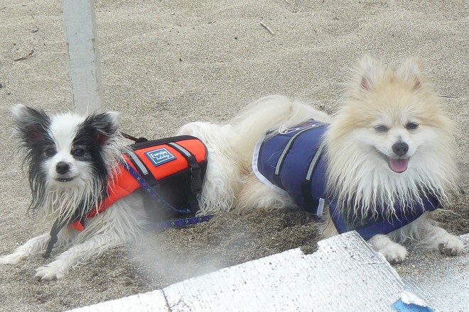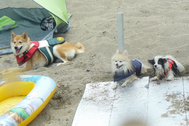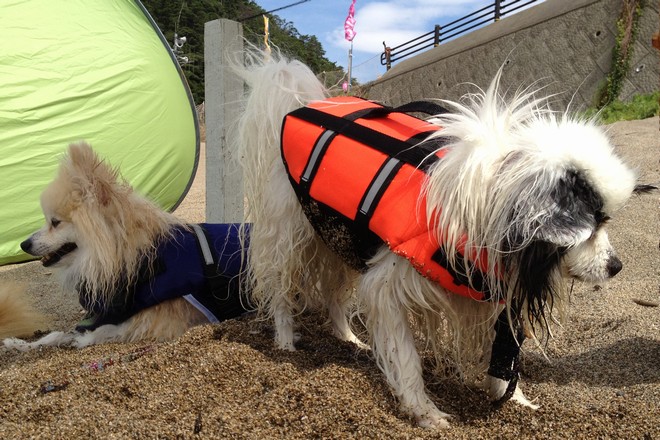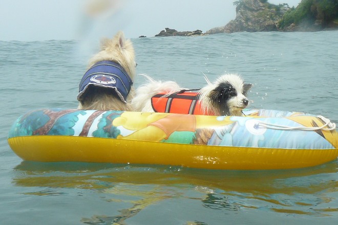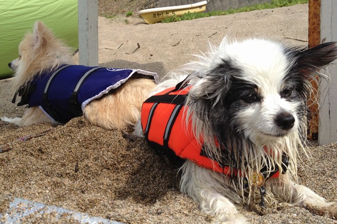 波も少し強い目の中果敢に泳いだジョン&パピ君お疲れ様~(笑)