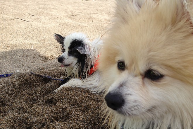 パピはランとかでは穴掘りはしないんですけど、海に来ると掘るんですよ。