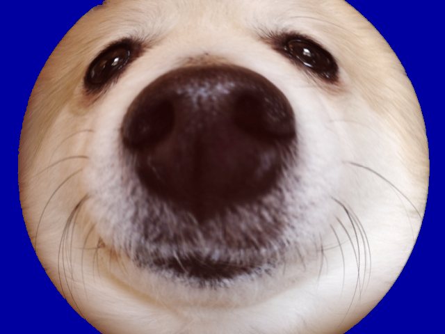 真正面の顔がアップで撮れたので、上の写真を魚眼風に加工をしてみました(笑)