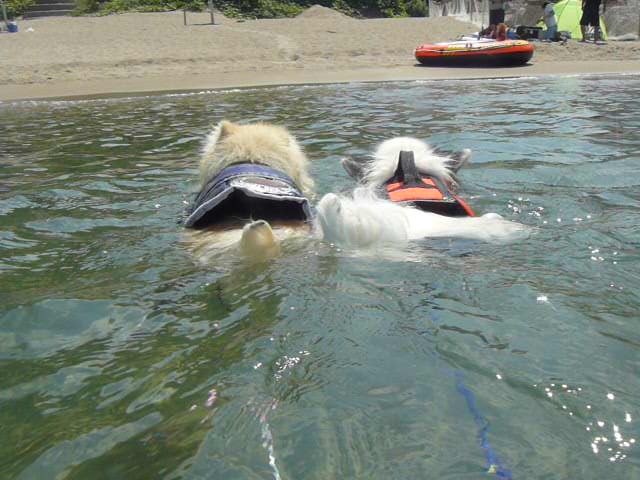 ジョン&パピ(関係ないけど、ジョン&パンチって知ってる?)の後姿、海の中でもフワフワお尻が萌~です。