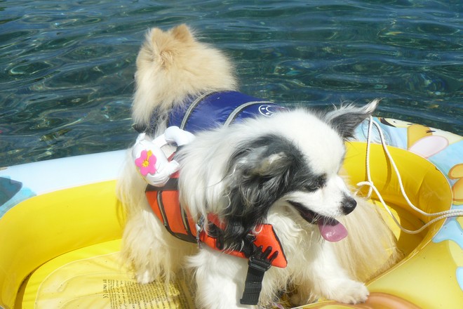 うちは泳いでるよりボートの方がいいみたいなんだけど、ボートが嫌い(落ち着かない)な子は、乗せてもすぐにダイブする子もいてるんですよ~(笑)