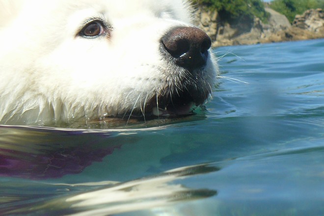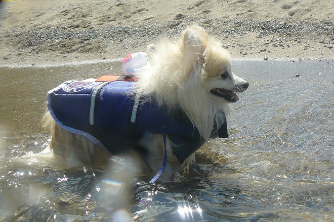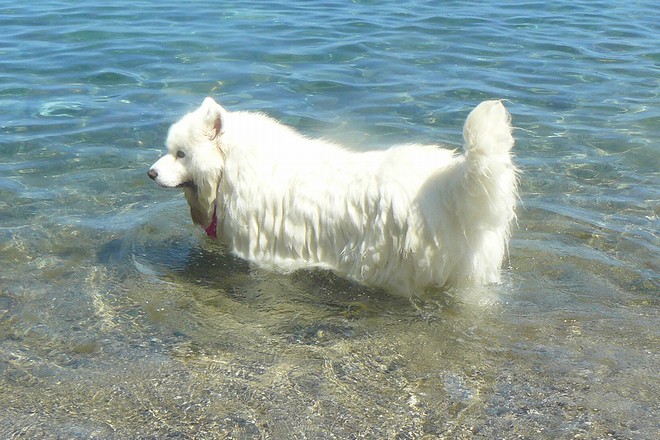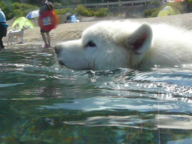 愛犬広場のプールでも上手に泳いでいて水が好きなクッキー君は、海でも上手に泳いでいました。