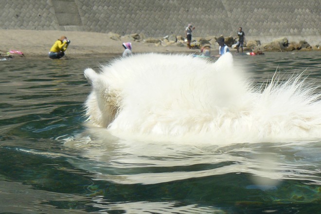 けどサモエドってボメとは違う毛質だから、ポメほどは濡れてもそんなに貧相になっていませんでした(笑)