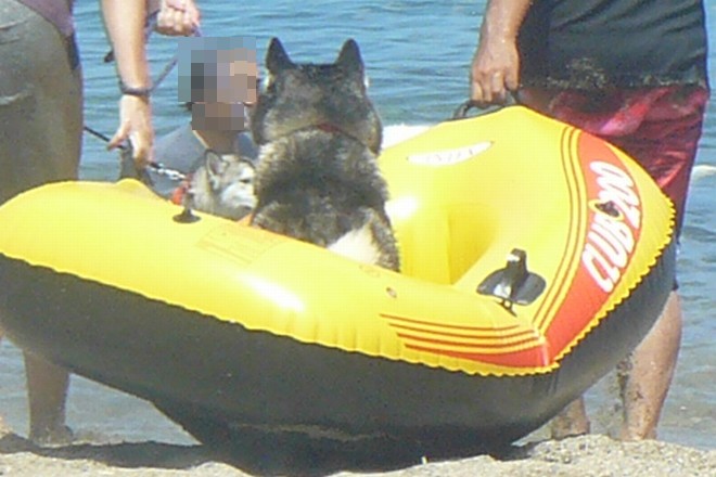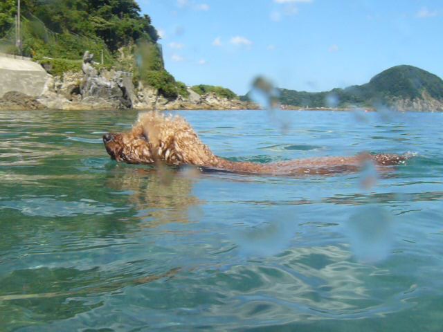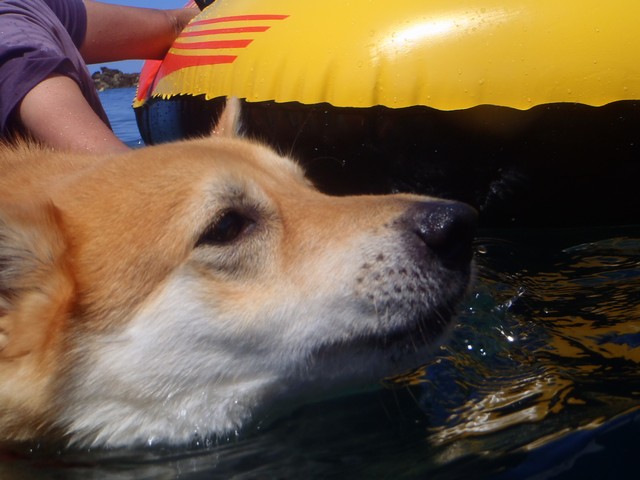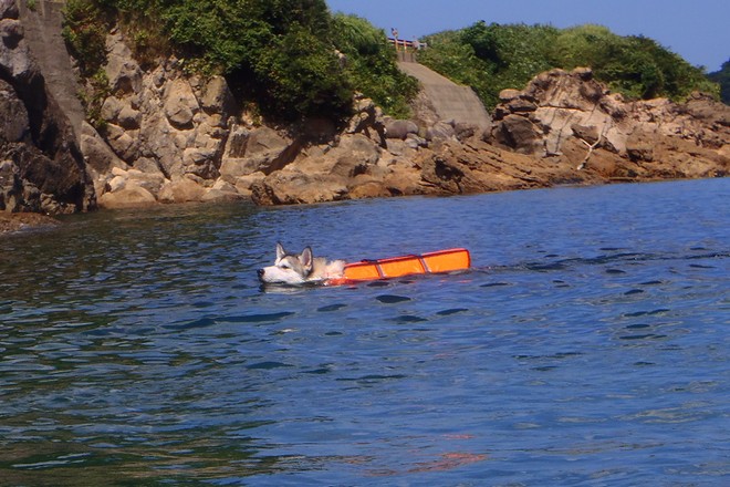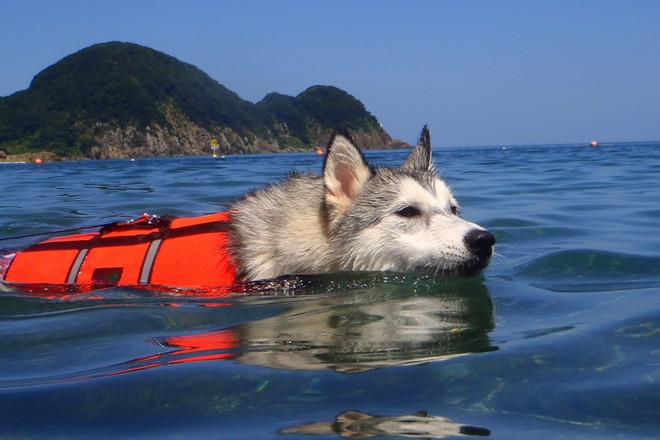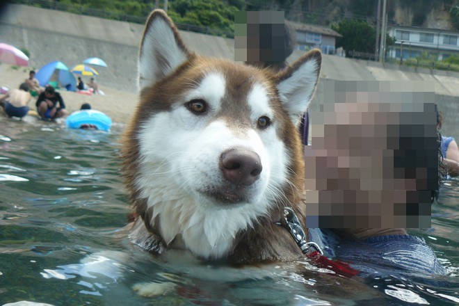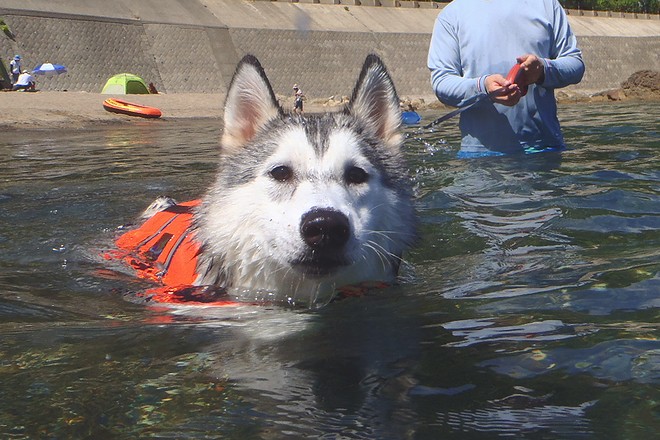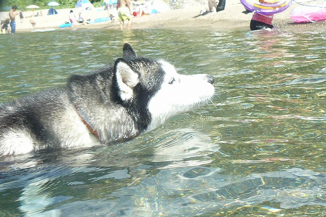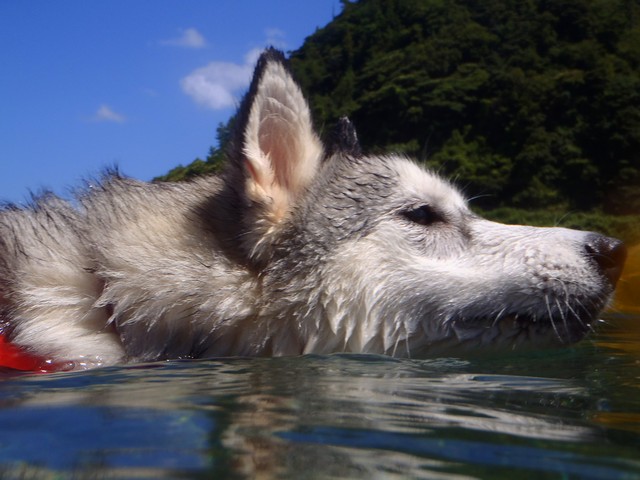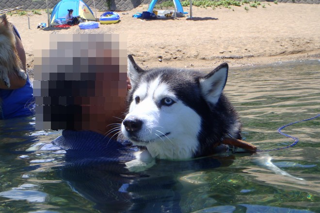 クオーレ家のお友達のハスキーちゃんは、泳ぐのが大好きな様で一人悠々と泳いでました。