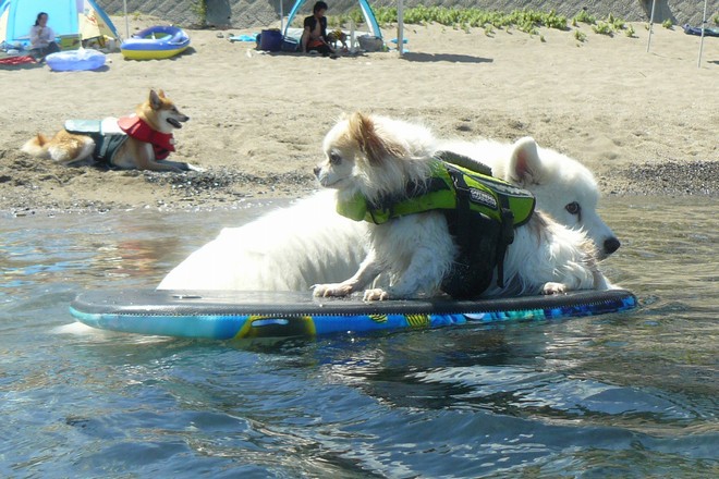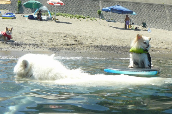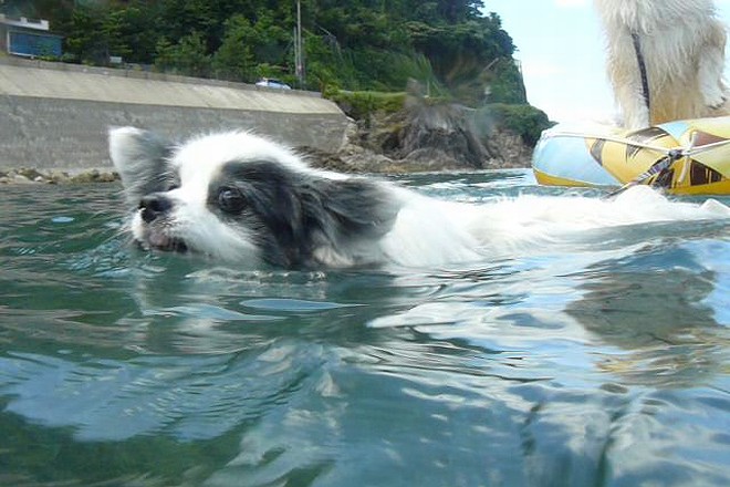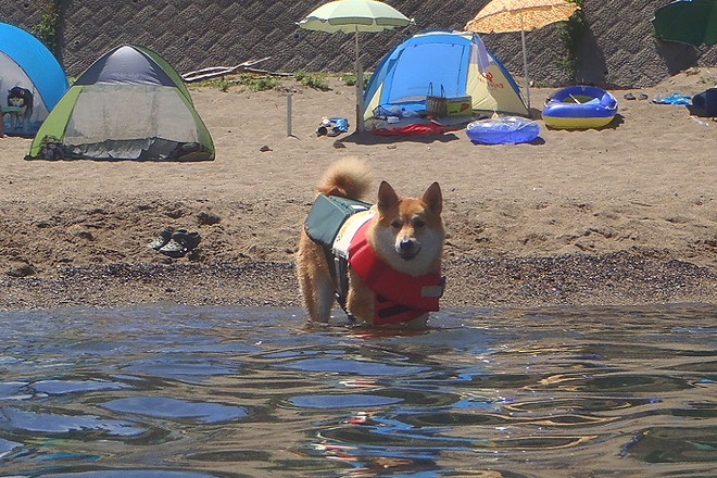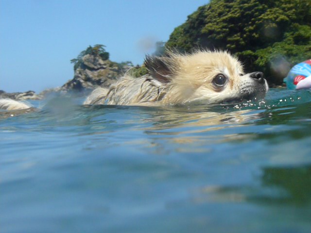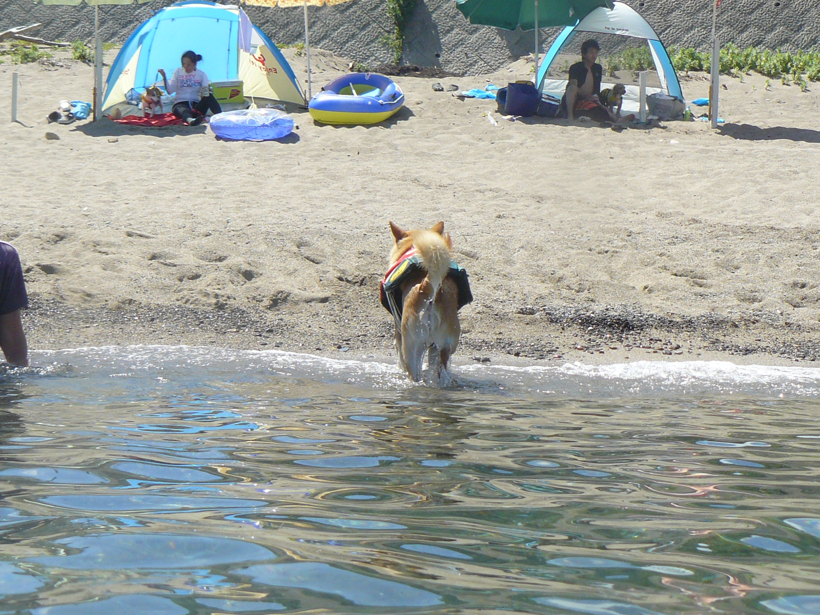 愛犬広場ではプールが好きでよく泳いでいたシドちゃんですが、海はあまり好きではないのか自分から入ろうとしませんでした。